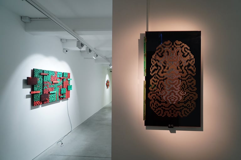 / Brain_2022_spray_paint_on_recycled_TV_screen_led_panel_raspberry_Pi3_ultrasonic_sensor_computer_code_95_x_55_x_4_cm